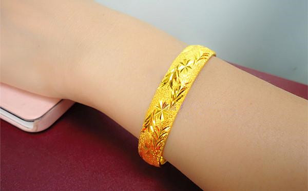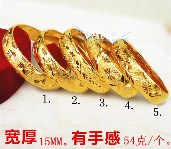 Earth Haute Gold Sarkin Plated Gold Bracelet 15MM Wide Face Solid High Up Bride Wedding Hand Decorated Frosted Snap