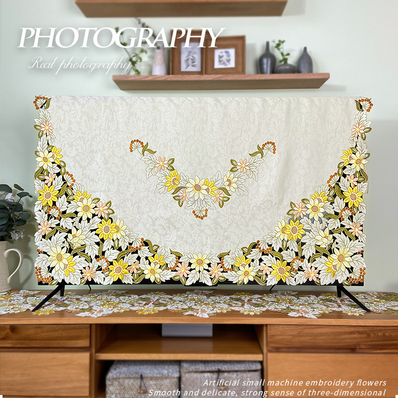 TV cover LCD curved screen embroidery pastoral fabric dustproof TV cover scarf American Chinese curtain sunflower send pole