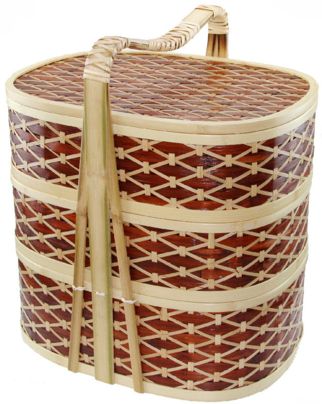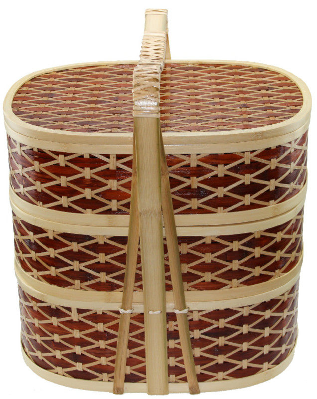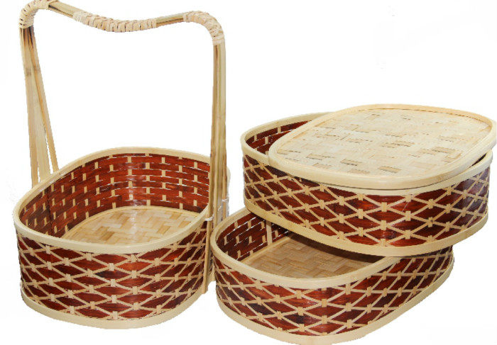 Three - layer egg - type cross - flower delivery basket takeaway bamboo pack lunch box handcuff basket multi - layer Bye fruit basket