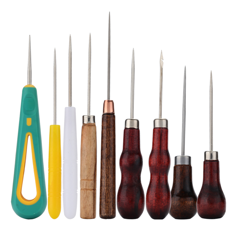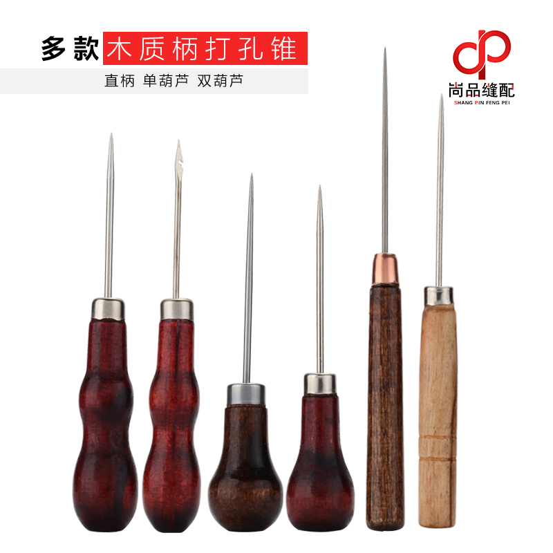 Wooden handle awl tool punch upper shoe awl with hook Manual awl needle punch needle Steel needle Crochet with hole