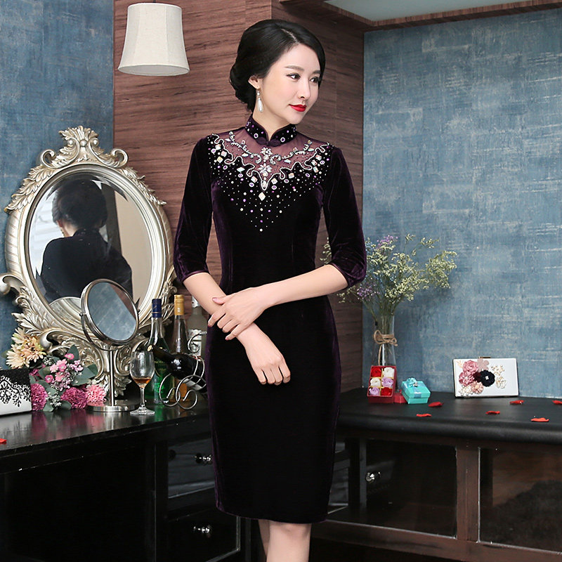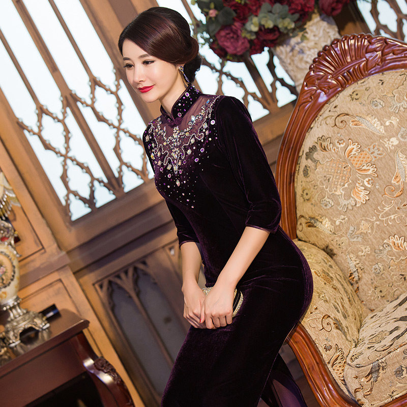 Golden Velvet Bangrobe Long Temperance 2023 New Chinese Festival Young Mom dress