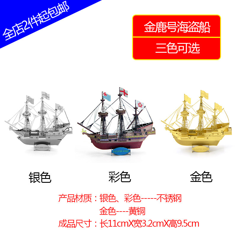 3D glue - free stereo metal assembly stainless steel puzzle model tank ship artillery ship Golden Deer pirate ship