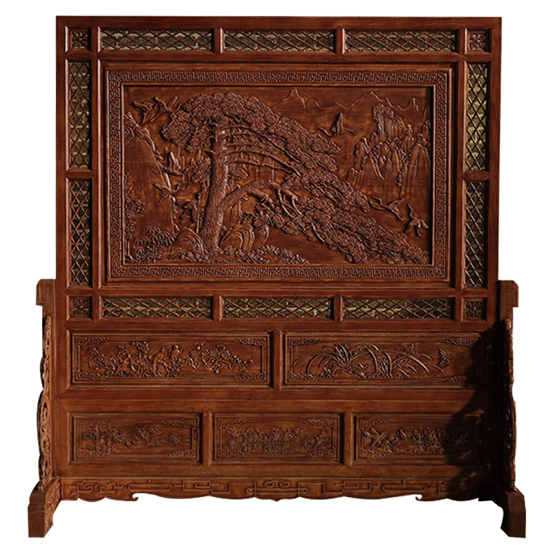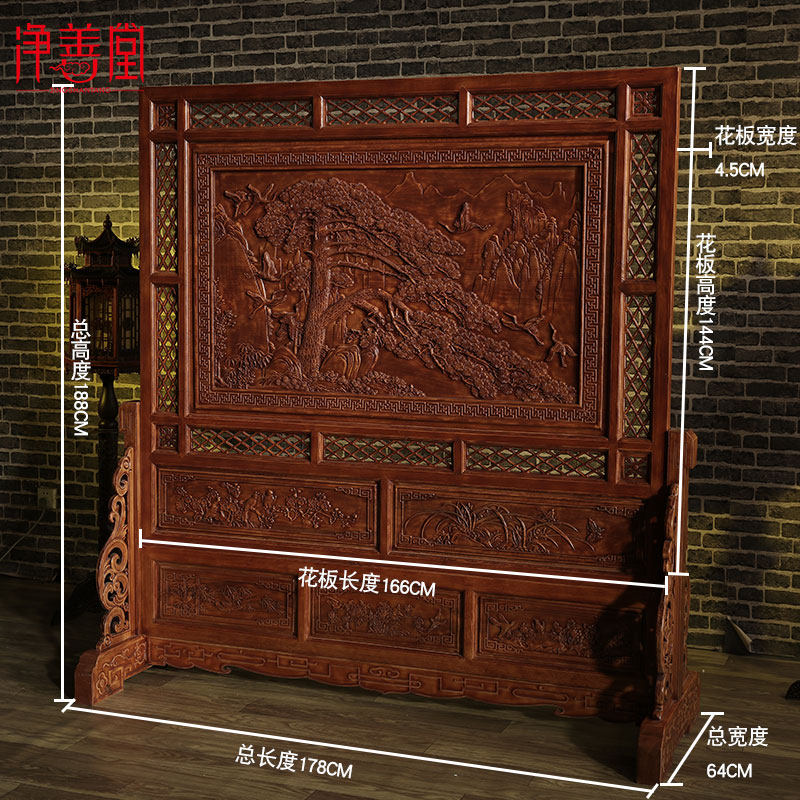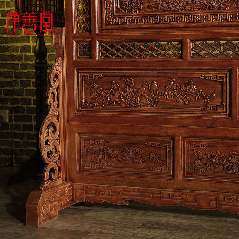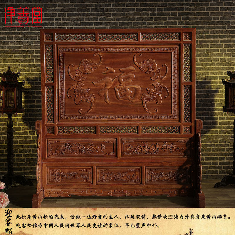 Dongyang wood carving simple modern Chinese bedroom screen partition Solid wood living room screen mobile seat screen Entrance plug-in screen
