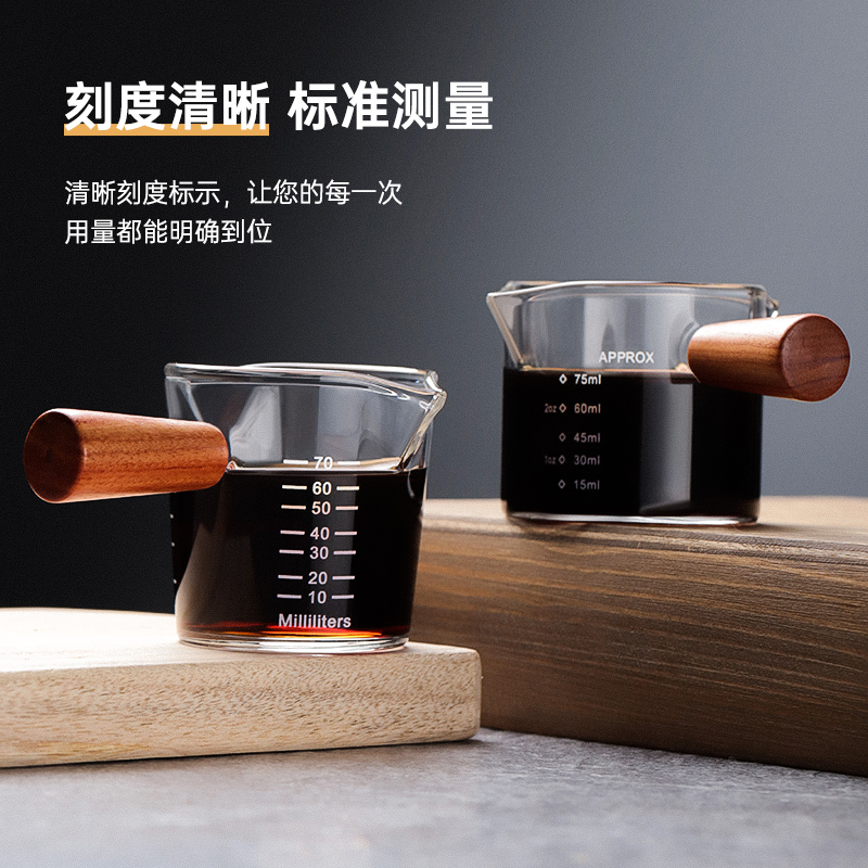 espresso extraction measuring cup with graduated coffee lotion angs cup glass measuring cup with handle wooden handle