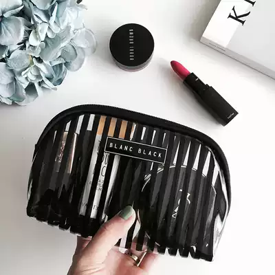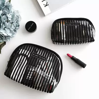 Striped transparent cosmetic bag Small black striped transparent cosmetic bag Small white striped transparent cosmetic bag Large black striped transparent cosmetic bag Large white