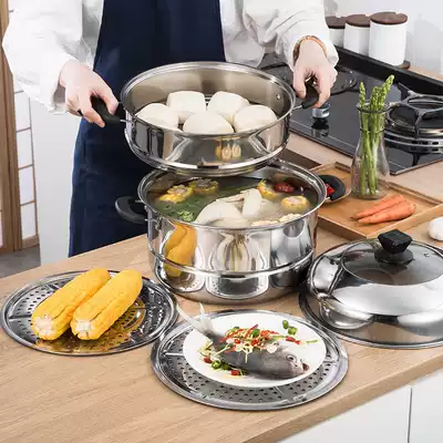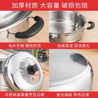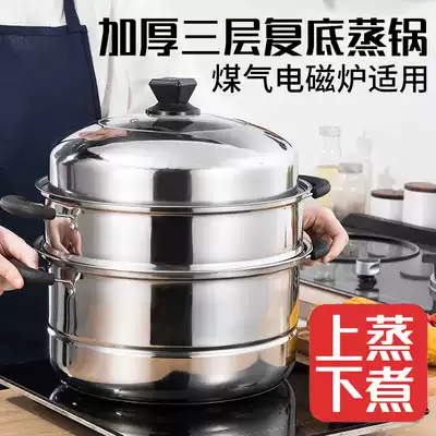 Household steamer stainless steel three-layer thickened compound bottom soup pot 2 layers 3 layers multi-layer steamer induction cooker gas stove pot