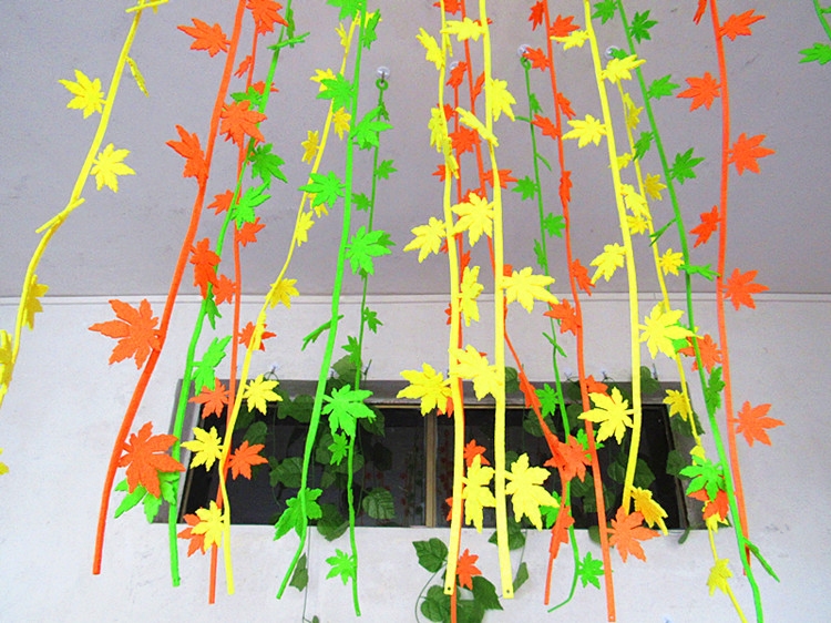Kindergarten pastoral ornaments hanging primary school corridor classroom maple four-leaf clover wicker environment decoration green leaves