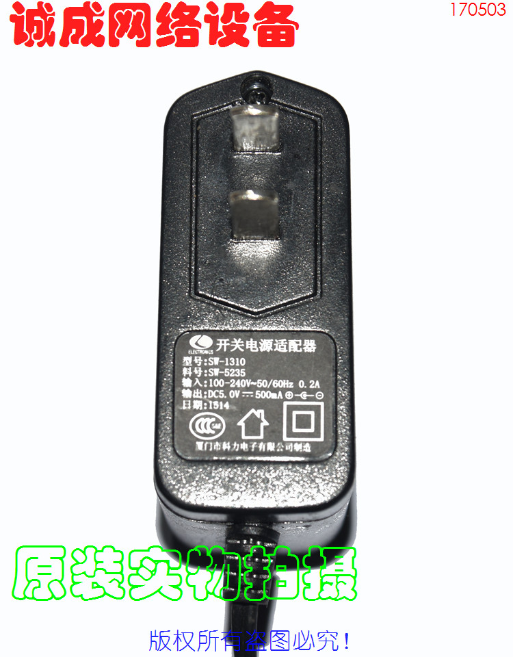 Original Keli DC5 0V500mA Power adapter Model:SW-1310 Material number:SW-5235