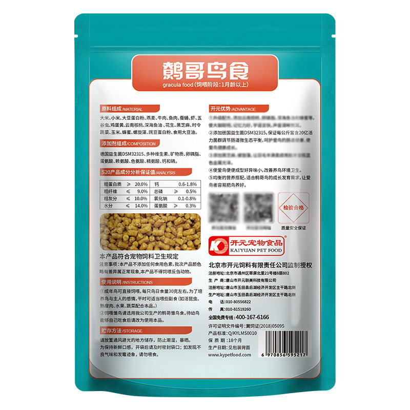 Kaiyuan bird food upgraded version of myna bird food feed myna bird food bird feed add prebiotic 500g
