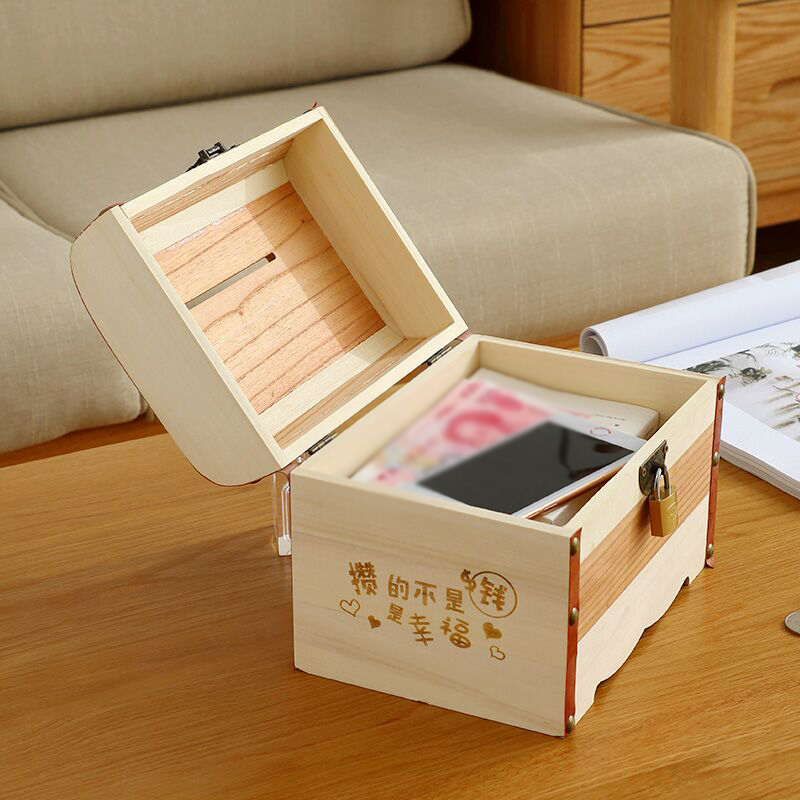 With lock containing box wood box Wooden Case Document Finishing Box Wooden password storage box Desktop collector with small