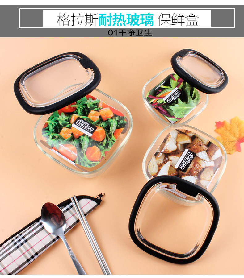 New music buckle music buckle glass cover simple heat resistant glass refreshing box lunch box microwave oven