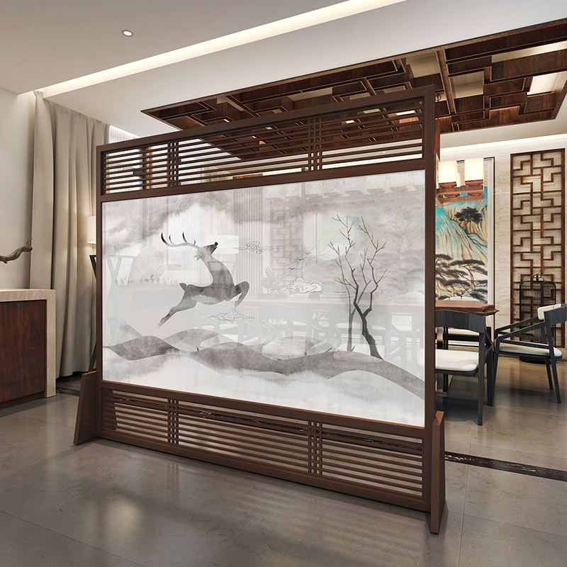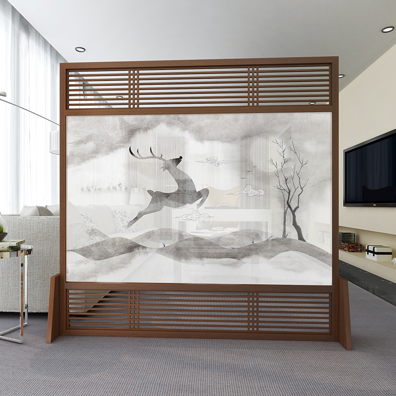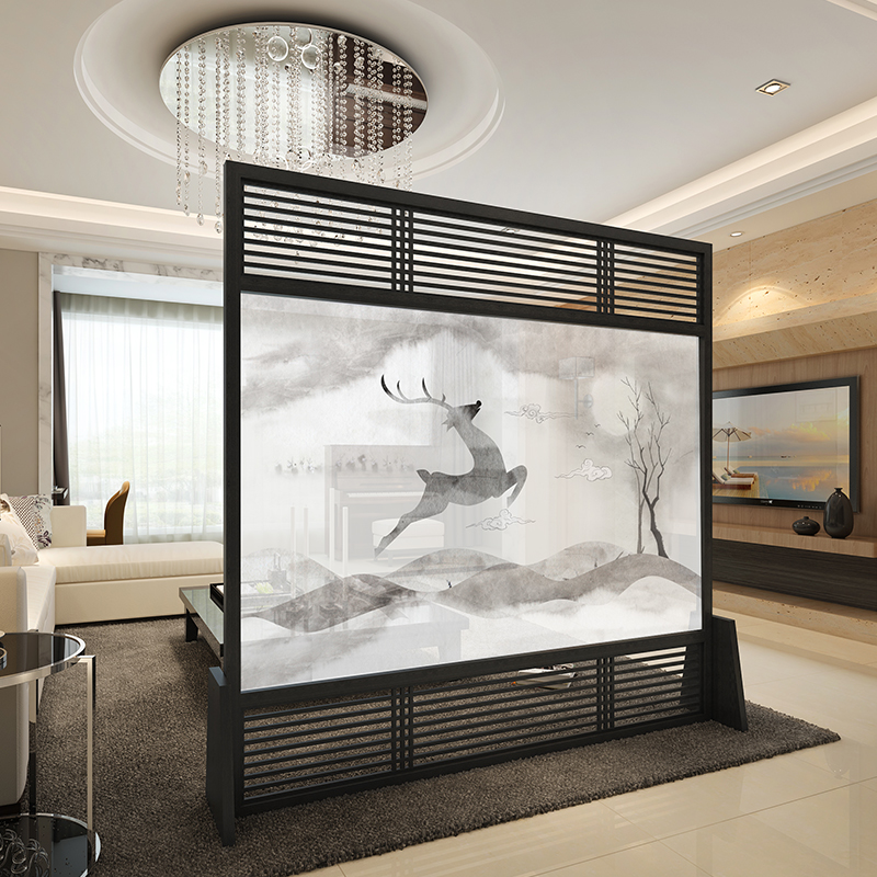 Modern minimal screen partition living room environmentally friendly bedroom Chinese-style masonry solid wooden screen moving seat screen