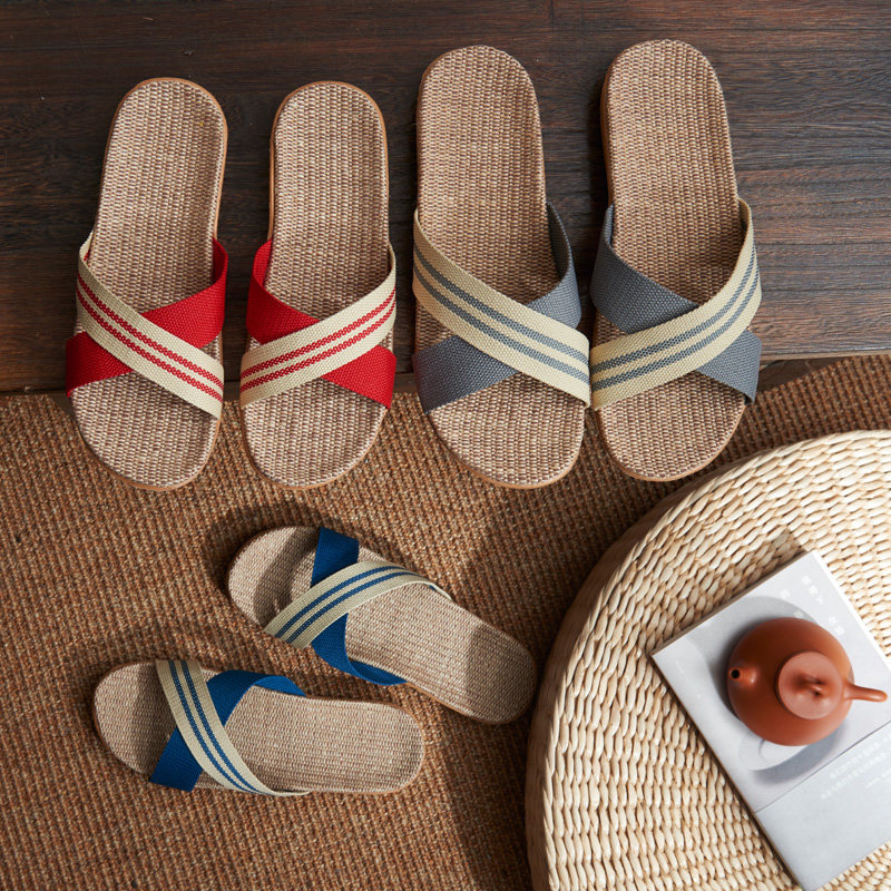 FAR PORT LINEN SLIPPERS SUMMER MEN AND WOMEN INDOOR HOME HOUSEHOLD NON-SLIP FLAT BOTTOM SPRING AUTUMN SEASONS COOL SLIPPERS STINK