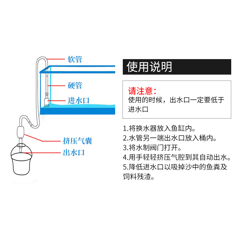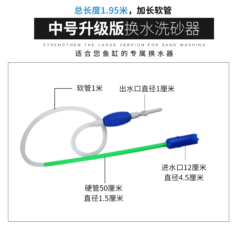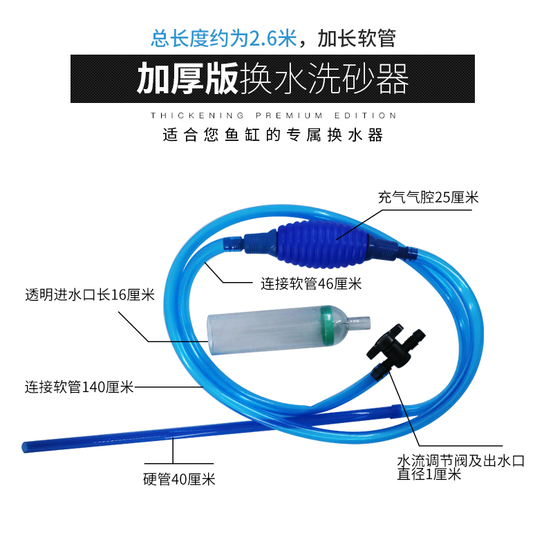 Aquarium Plastic Wash Sand Suction Water Changer Fish Tank Lengthened Water Suction Poop Clean Water for water-changing transparent hoses