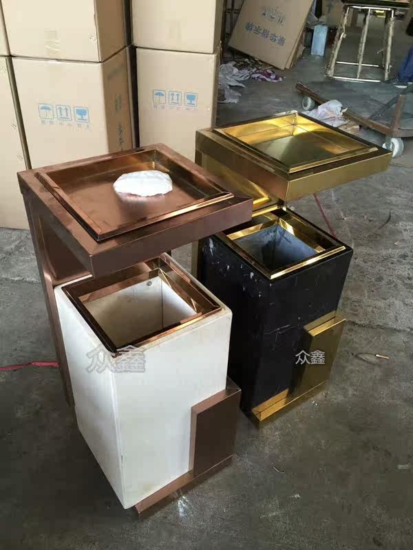 Hotel stainless steel marble trash Creative lobby Shopping mall floor ash bucket Elevator port vertical peel box