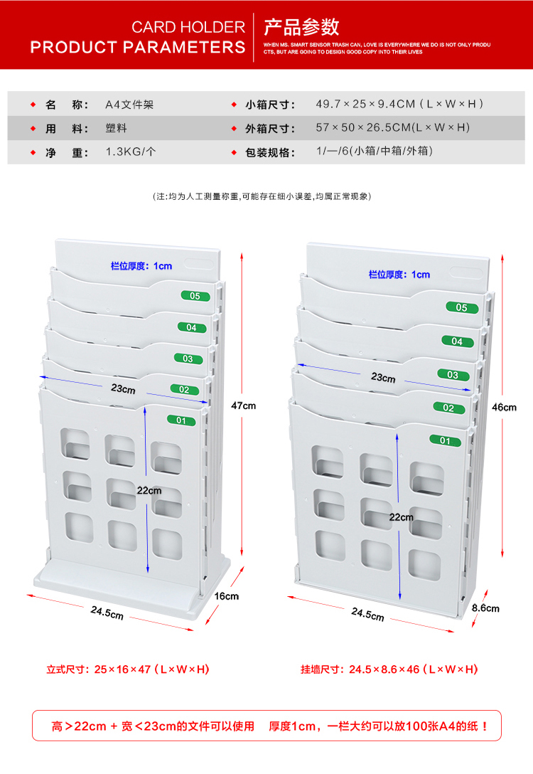 5-place A4 file rack plastic card holder desktop type suspended material frame A4 warehouse material card holder