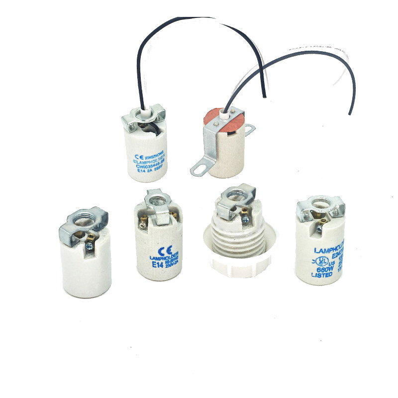 E14 Ceramic lamp head iron bracket all copper core resistant high temperature 7 characters small screw candle bulb lamp cord cord