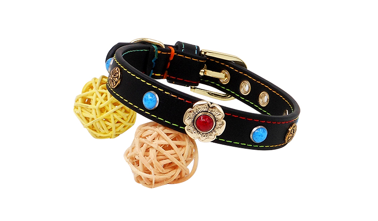 Golden Flowers Buckle Pine Stone Achille Genuine Leather Pet Item Ring Pooch Snownery Neck