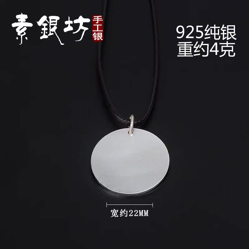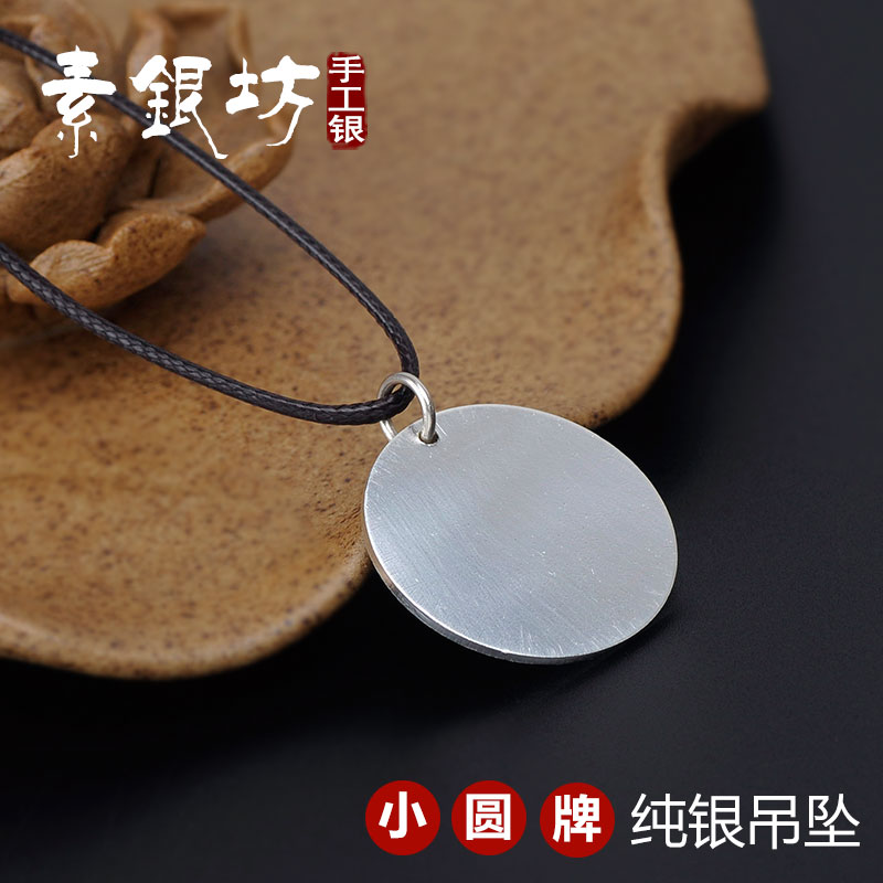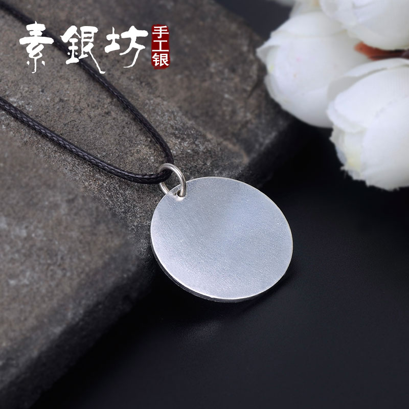 Small round card S999 pure silver pendant necklace pendant women's personality pendant necklace jewelry can be free lettering