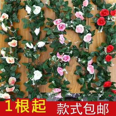 Simulation rose strip rhododendron vine fake flower wall-mounted heating air conditioning Sewer pipe suspended ceiling Shopping mall decoration vine