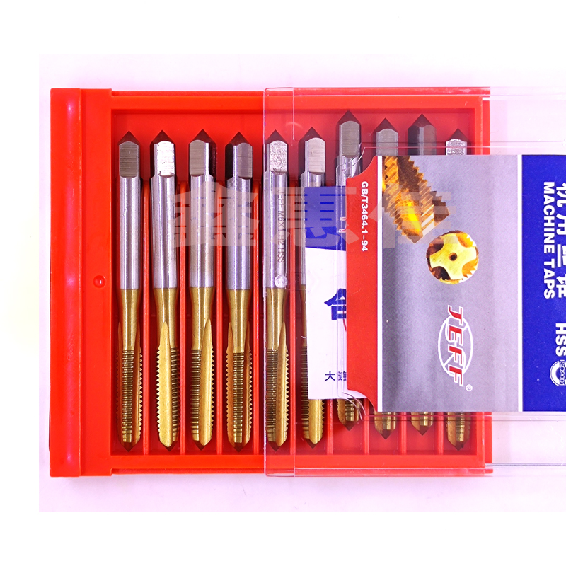 Dalian Far East titanium-plated screw tap JEFF coated screw tap Titanium-plated machine screw tap straight groove screw tap M3-M12