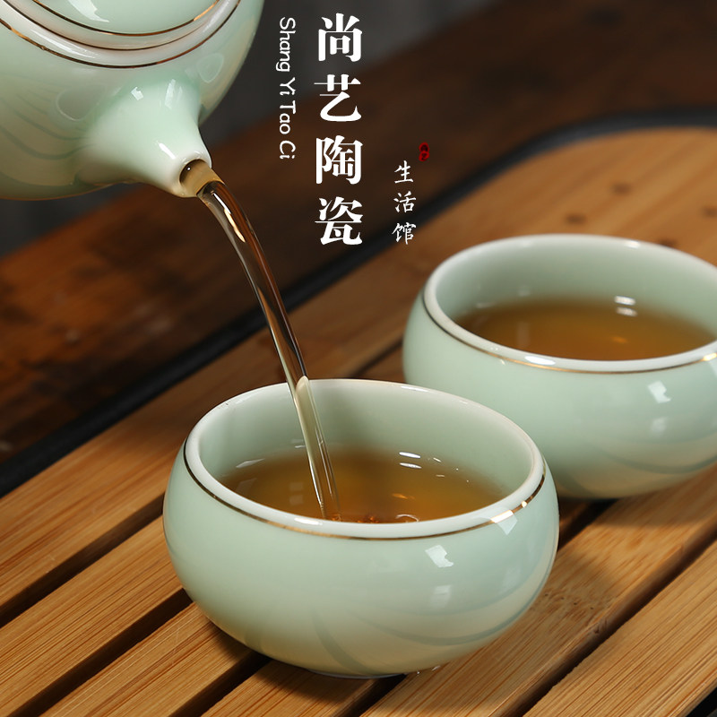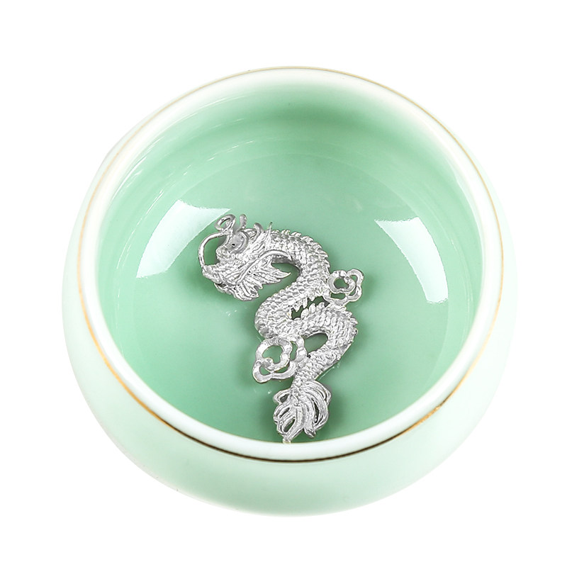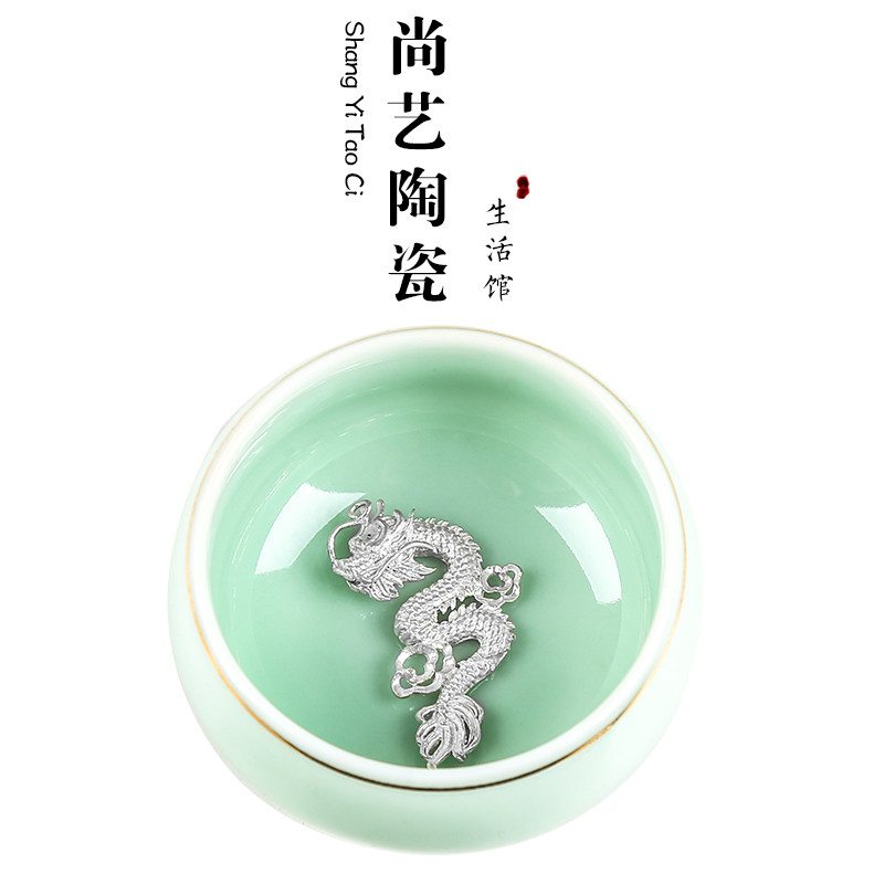 Celadon inlaid silver ceramic tea cup personal cup master cup silver fish single cup tea cup kung fu tea set small tea cup tea bowl