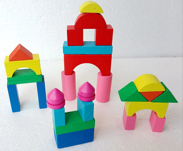 A set of 26 wooden castle blocks