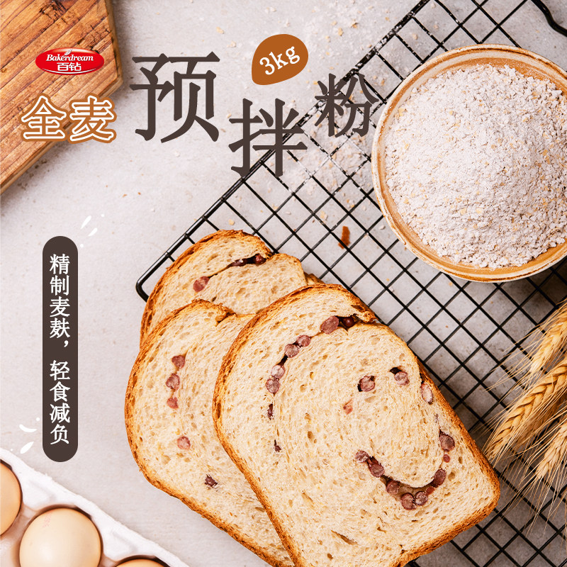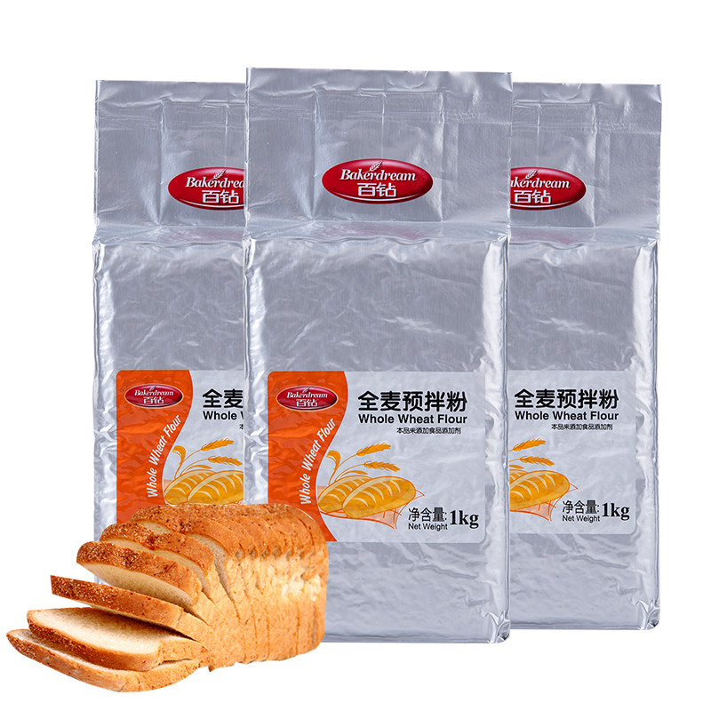 100 drill whole wheat premixed powder wheat flour bread flour with wheat bran doing toast biscuit baking raw material 1kg * 3 bags