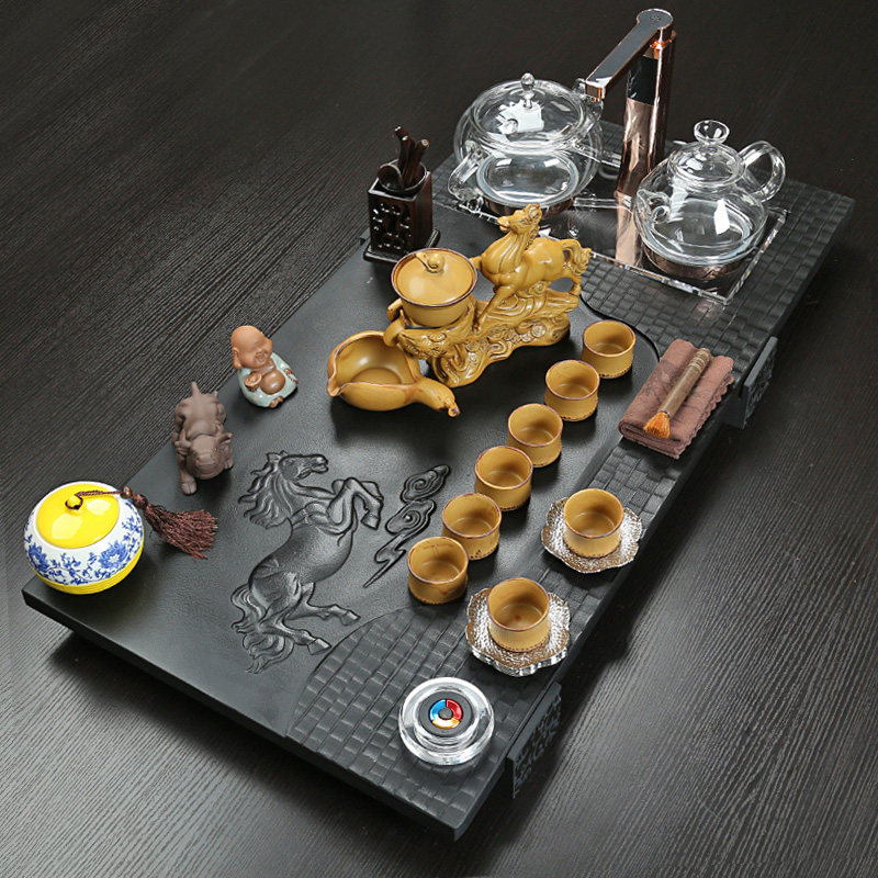 High-end relief block natural Ujiujiu tea set stone tea set stone tea sea kung fu tea table household office