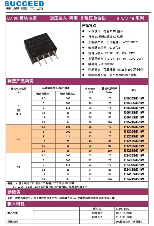 succeed Saiside DC-DC power module B2412S-1W small volume power module isolated unregulated voltage