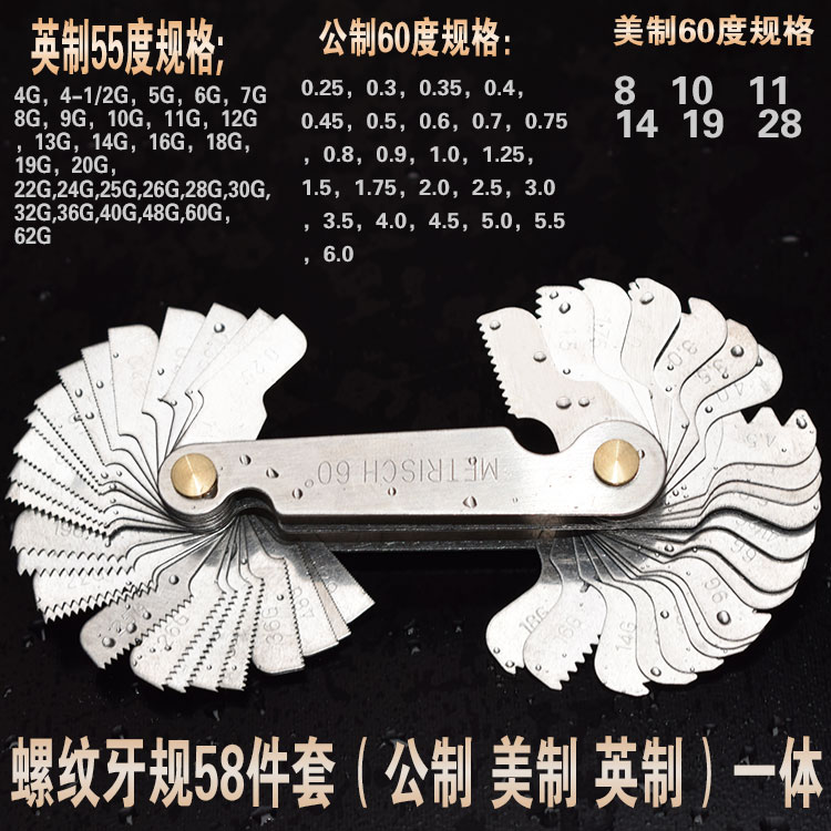 Threaded tooth gauge 58PC Gong British American system 60 + 55 degrees