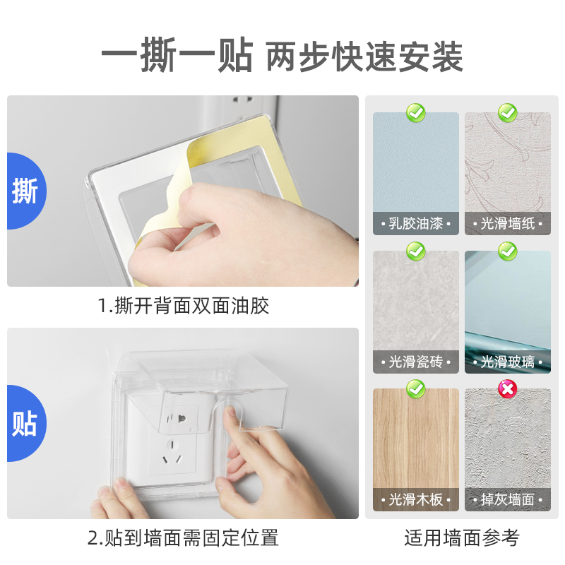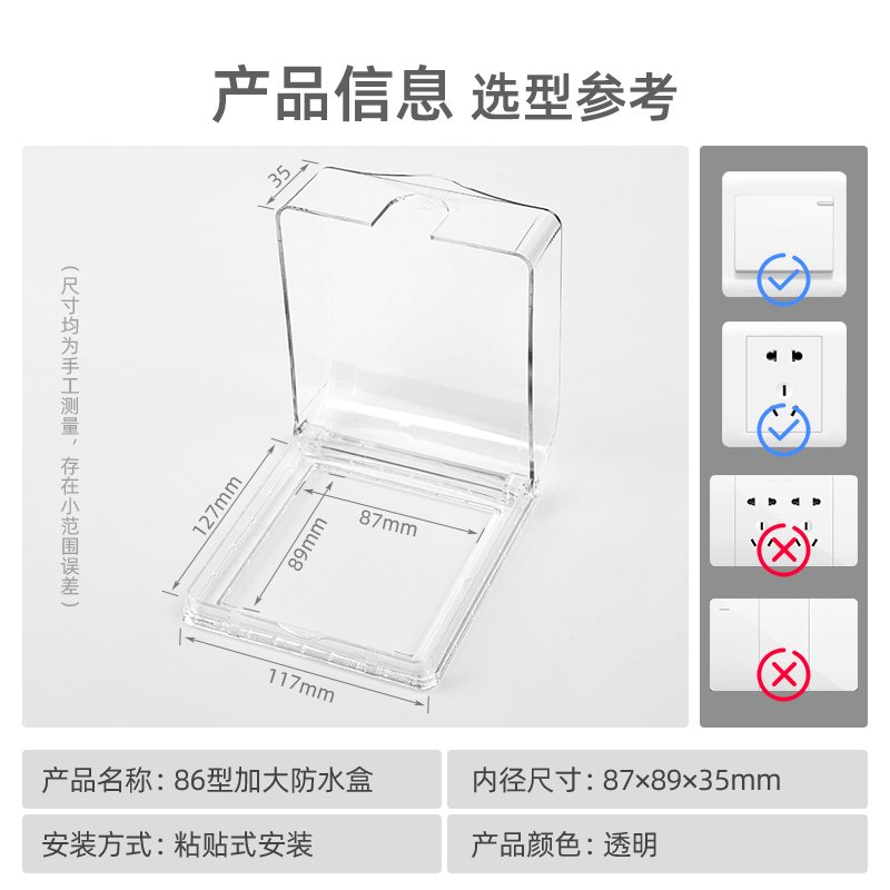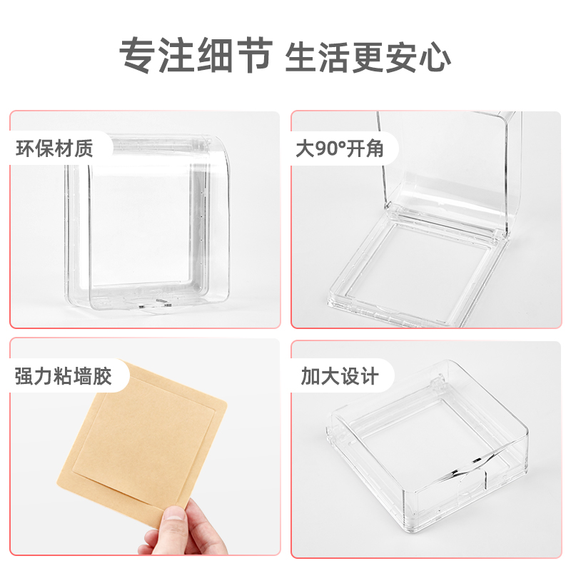 86 type transparent socket protective cover waterproof box Adhesive powder room bathroom splash box switch waterproof cover Household