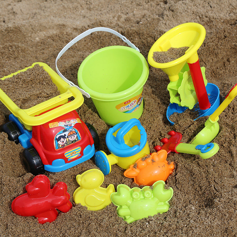 Children's beach toy car set cassia seed play sand tool bucket baby digging sand shovel large hourglass toy