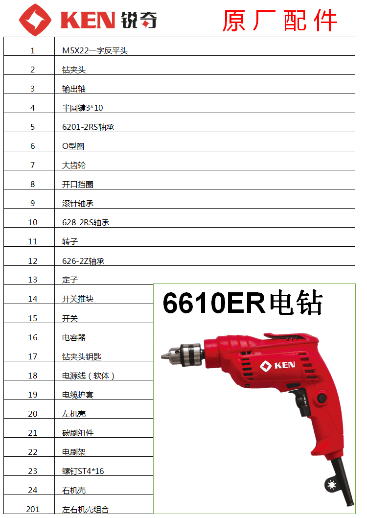 KEN Ruiqi 6610ER electric drill accessories Rotor stator switch carbon brush bearing housing output shaft hot sale