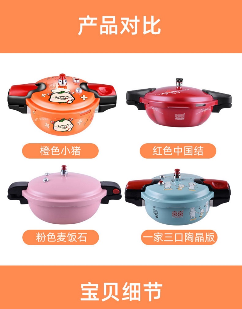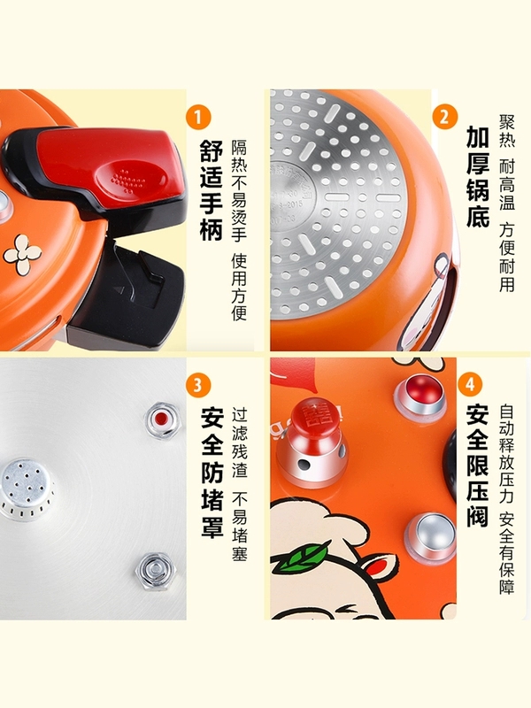 Double Delight High Pressure Pan 1-2-3-4 People Home Gas Induction Cookers Universal Mini Small Pressure Cooker Explosion Proof Net Red