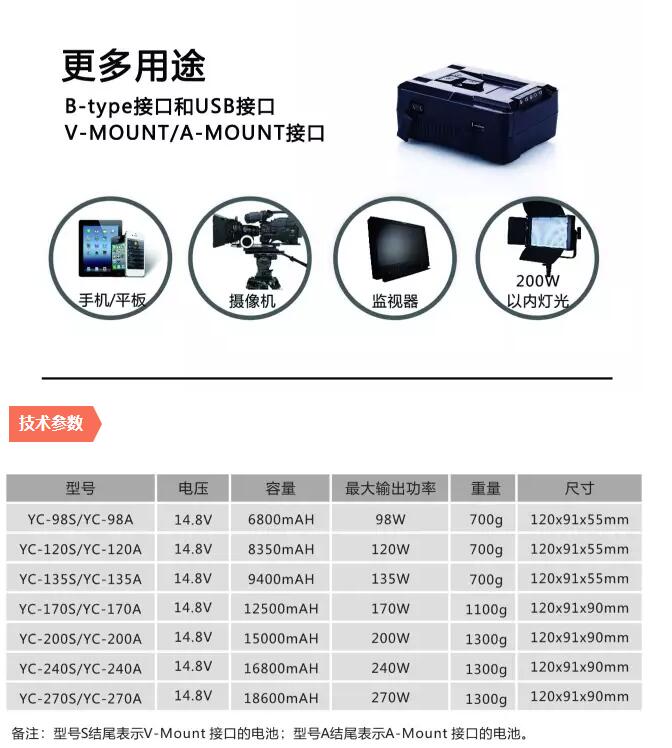 Yingchen YINCHEM small YC-120S camera V port power supply system large battery with USB battery