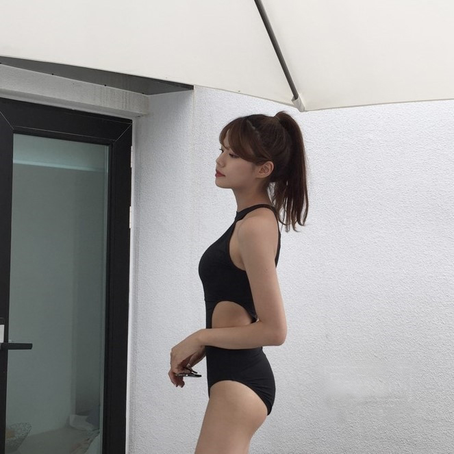 Thailand custom spa swimsuit female size chest gathered one-piece conservative cover belly black thin halter temperament swimsuit