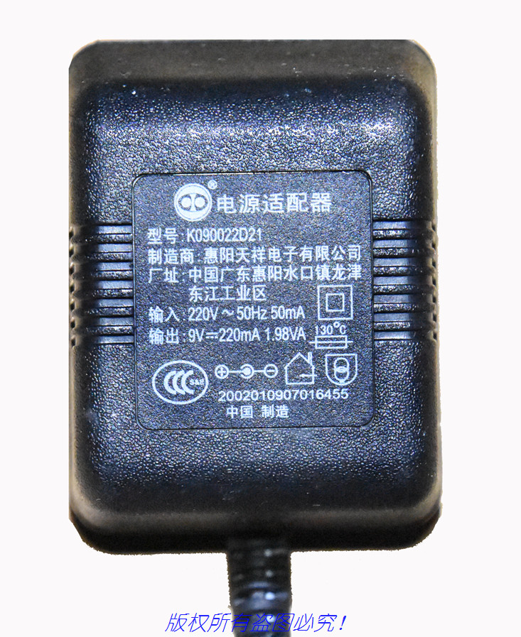 Huiyang Tianxiang Electronics 9V220MA 1 98VA Siemens power adapter Model: K090022D21