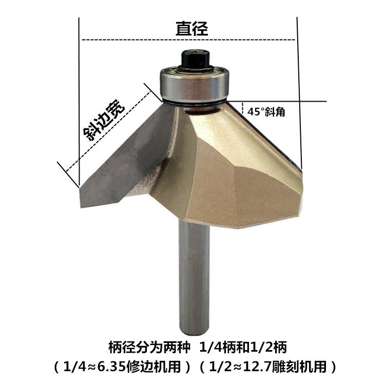 Wave 45 degree bevelled knife woodworking milling cutter edging machine engraving knife head small shank chamfered knife 45 ° bevelled knife gong groove