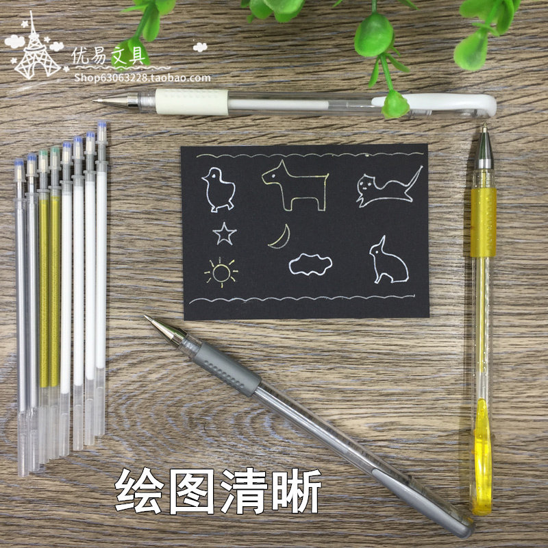 Hard pen white neutral pen core black writing white black cardboard special pen hand drawing high light pen silver pen core