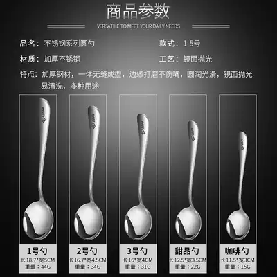 Stainless steel spoon Adult eating spoon Coffee stirring spoon Children's spoon Long handle round spoon Western spoon Household