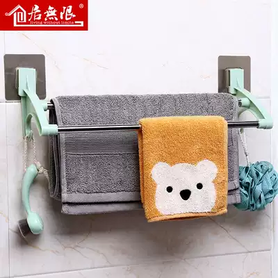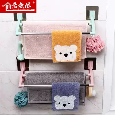 Powder room stainless steel towel rack Toilet bathroom punch-free double rod supplies and utensils Suction cup pendant rack