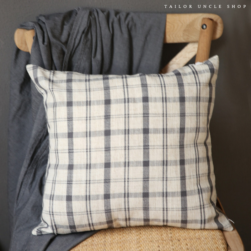 New products Home sofa Pillow Minima Nordic Plaid Cotton Linen Grey Cushions Office Lean on pillow cover with Core-Taobao