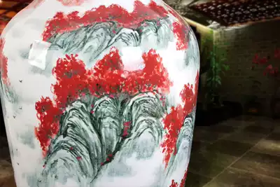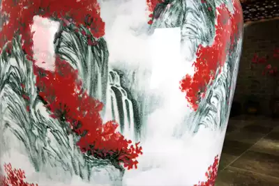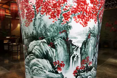 Jingdezhen ceramic large vase hand-painted glaze color blue and white landscape landing new house living room decoration 1 meter ornaments