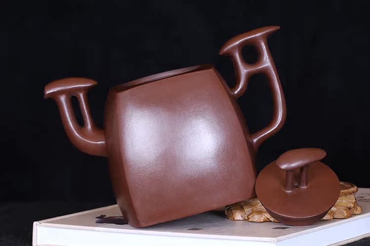 Taiwanese returning old purple clay pot, famous master, Yu Guoliang of the Republic of China, hand-made square special-shaped pot