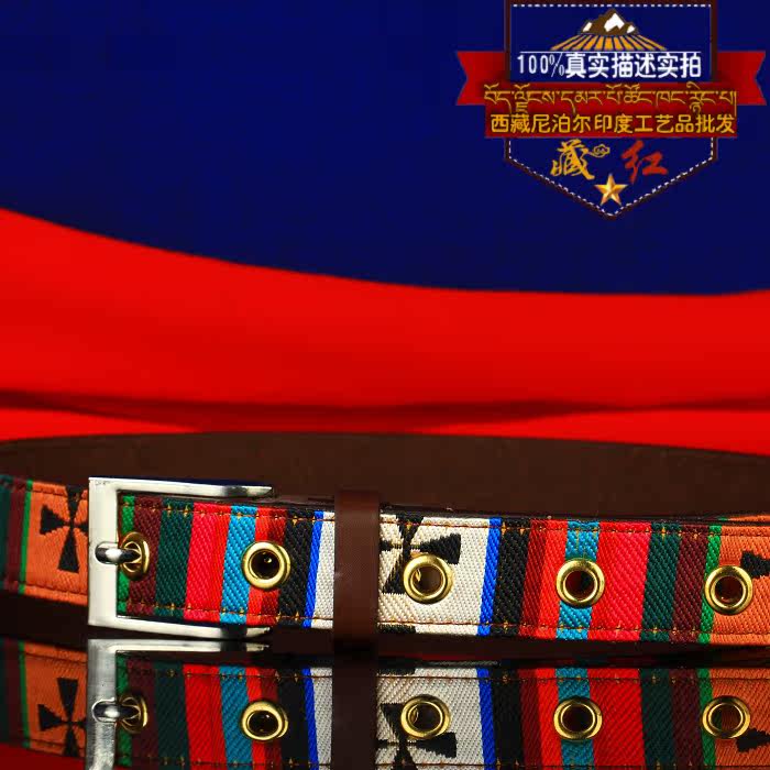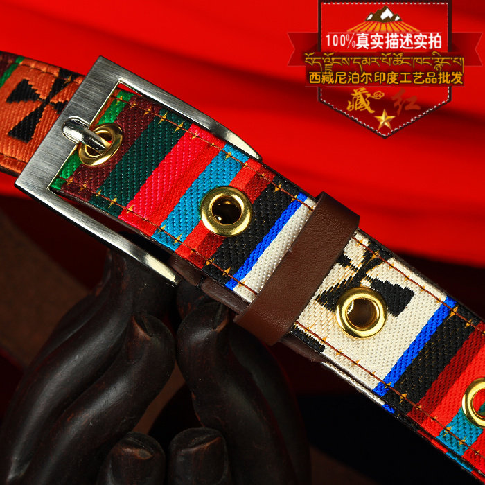 Tibetan Red Nation Features Exotic Culture Color Handmade Needle Trouser Belt Belt