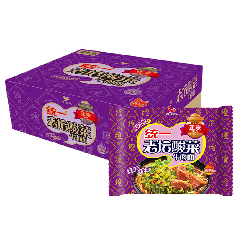 Unified Instant noodles Laotan Sauerkraut beef noodles 24 sachets full box instant noodles Instant Supper official flagship store