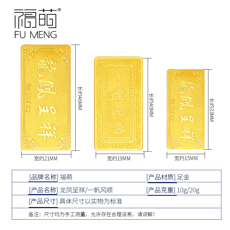 Fu Meng 999 foot gold investment gold strip 10 gr gold BRICS 20g small yellow fish 20 gr precious metal 10g pure gold block