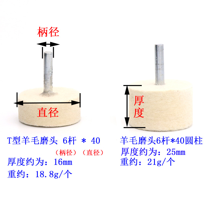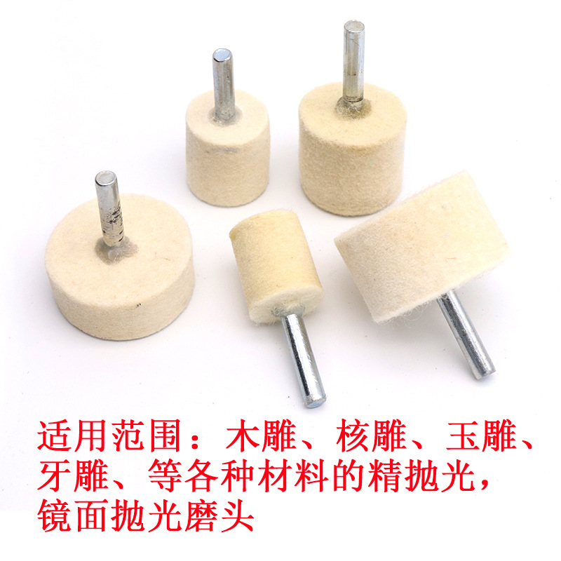 Handle 6 wool grinding head Wool polishing wheel Cylindrical jade glass mirror polishing electric grinding head Wool grinding head