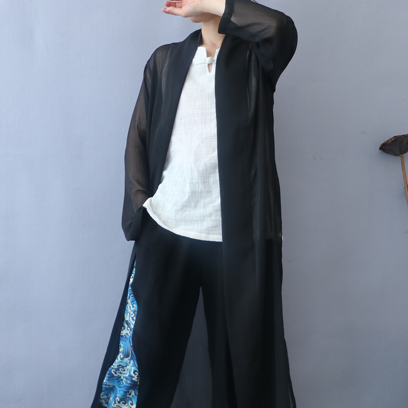 Summer Chinese original Hanfu men's Tang dress Chinese style summer thin coat sunscreen shirt cape antique long shirt trench coat